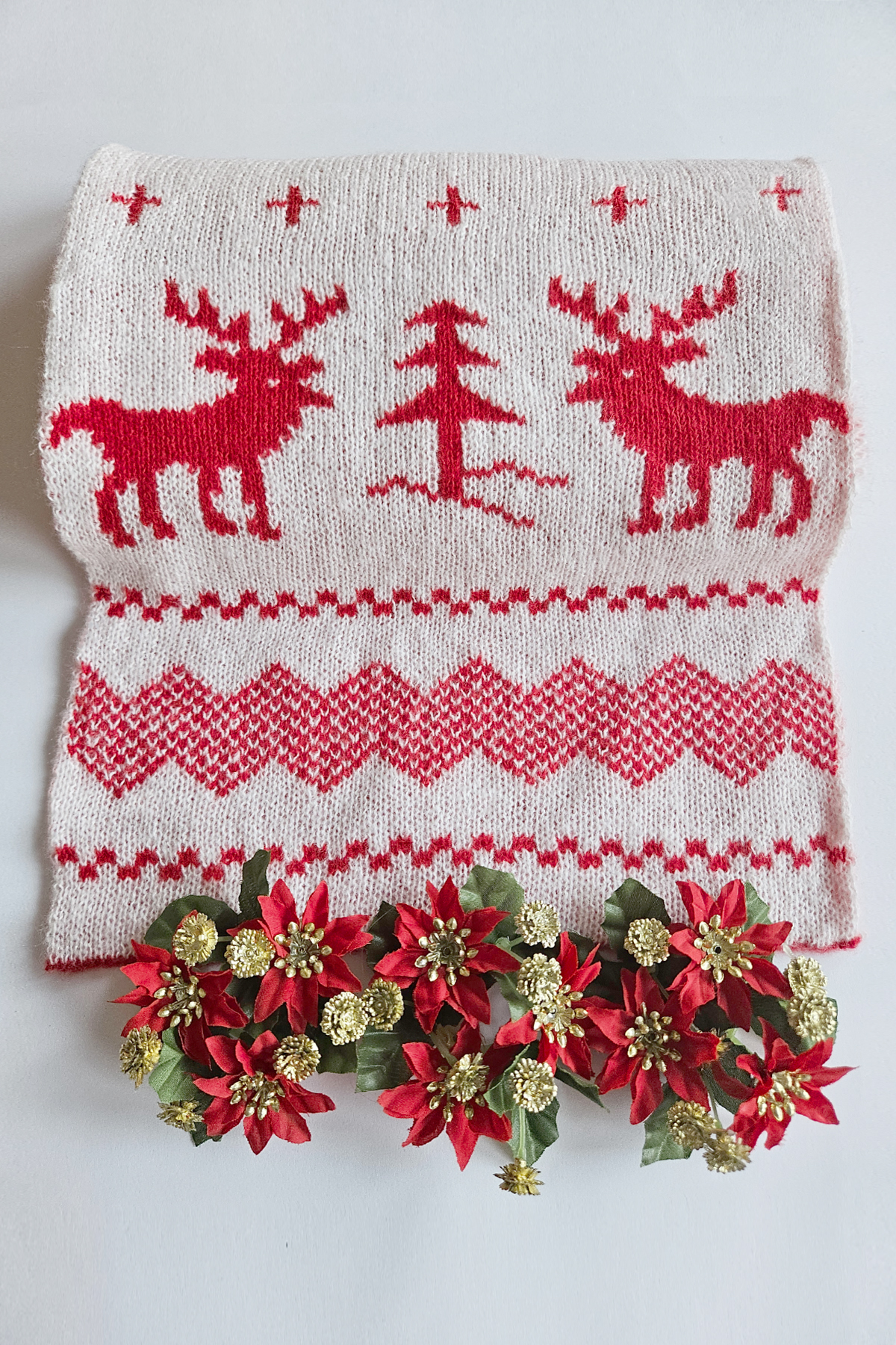 Kalėdinis šalikėlis; viena pusė – balta, kita pusė – raudona. Puiki dovana Kalėdų proga sūnui, dukrai, draugei, broliui, sesei..