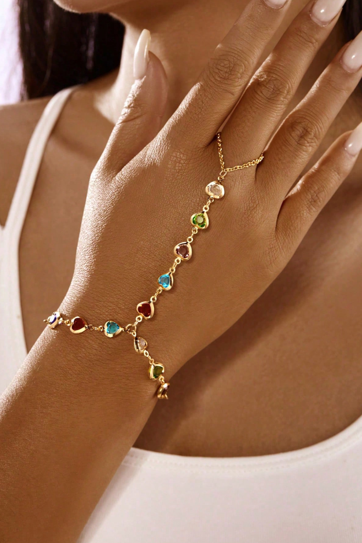 Įdomus rankos plaštakos papuošalas grandinėlė – apyrankė Murano. Grandinėlė sujungia riešo apyrankę ir pirštą papildoma grandinėle. Grandinėlė padabinta mažais kristaliukais. Su laiku metalas gali patamsėti.